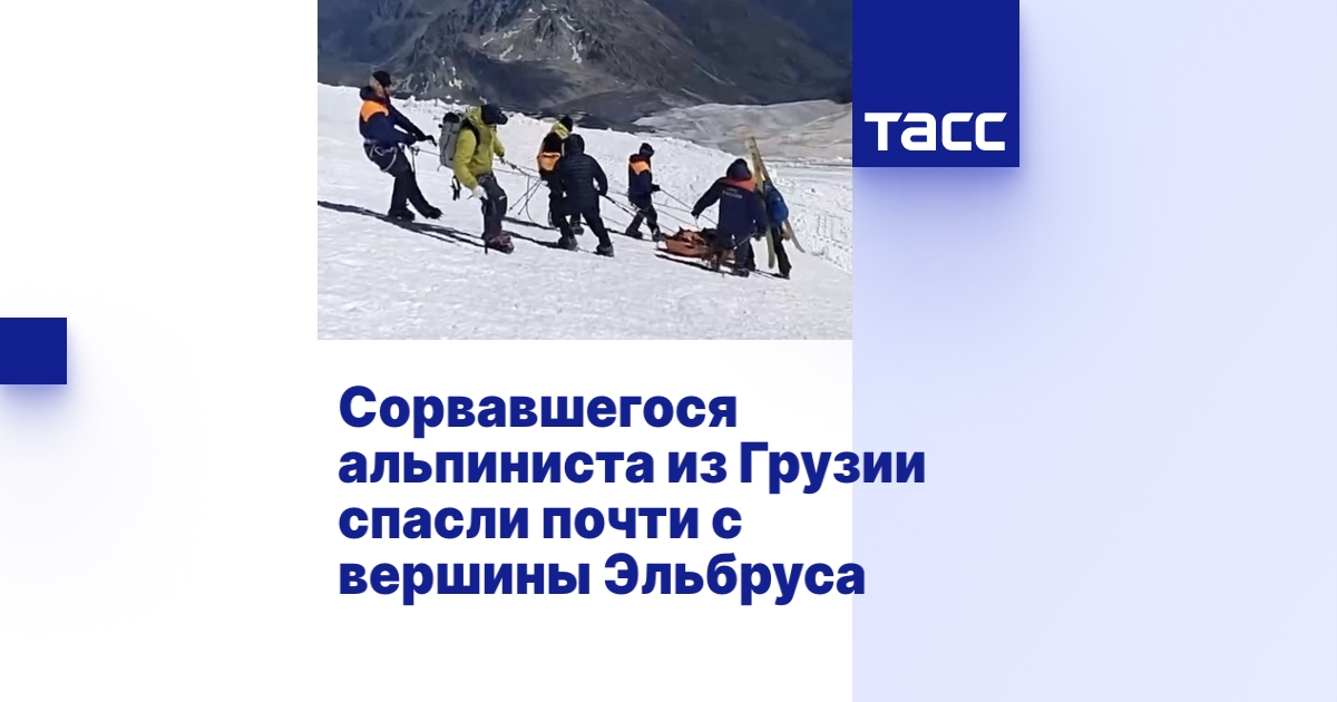 МОСКВА, 14 августа. /ТАСС/. Сотрудники МЧС спасли почти с вершины Эльбруса альпиниста из Грузии, который сорвался с высоты и получил травмы. Об этом ТАСС сообщили в пресс-службе МЧС РФ.