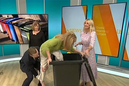 Телеведущая, журналистка Кейт Гаррауэй в студии шоу «Доброе утро, Британия» (Good Morning Britain) на телеканале ITV залезла в мусорный бак. Происходящее в прямом эфире разозлило зрителей: один из них заявил, что передача «пробила новое дно», Daily Mail.