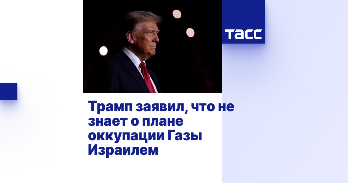 ВАШИНГТОН, 6 августа. /ТАСС/. Президент США Дональд Трамп заверил, что не в курсе планов оккупации сектора Газа Израилем, но не стал протестовать против такого возможного развития событий.