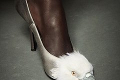 На размещенных снимках запечатлены туфли из новой коллекции весна/лето-2026 под названием The Agony and The Ecstasy («Агония и экстаз»). Они выполнены из сатинового материала и оформлены птичьей головой на носке. Согласно описанию, данный декоративный элемент выполнен вручную.