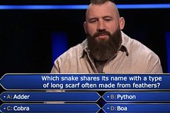 Один из первых вопросов телевикторины касался модного аксессуара. «Какая змея носит то же название, что и длинный шарф, который часто изготавливают из перьев?» — гласил он. На выбор Марлеру предложили четыре ответа: гадюка, питон, кобра и боа.
