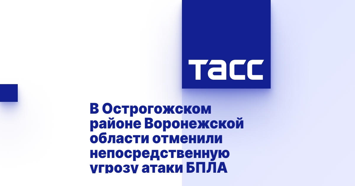 ВОРОНЕЖ, 6 августа. /ТАСС/. Непосредственная опасность удара БПЛА отменена в Острогожском районе Воронежской области. Об этом сообщил губернатор Александр Гусев.