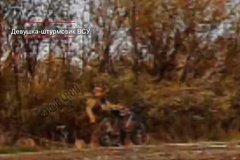 Женщину, сражающуюся в рядах ВСУ, заметил российский FPV-дрон. На кадрах, представленных в посте, видно, как дрон заметил украинскую женщину-штурмовика, которая ехала по дороге на велосипеде и потом пыталась скрыться от беспилотника в овраге.