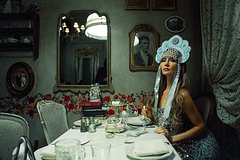 34-летнюю аферистку, называющую себя Анной Делви, запечатлели сидящей за обеденным столом. Она позировала на камеру в наряде, оформленном голубыми сияющими пайетками. Кроме того, на ней был надет кокошник, украшенный голубыми атласными лентами и белыми бусинами.