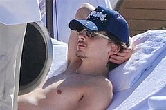 30-летнего артиста запечатлели во время отдыха на пляже в . Он предстал перед камерой, лежа в шезлонге с голым торсом, в синей бейсболке, бежевых шортах и солнцезащитных очках.