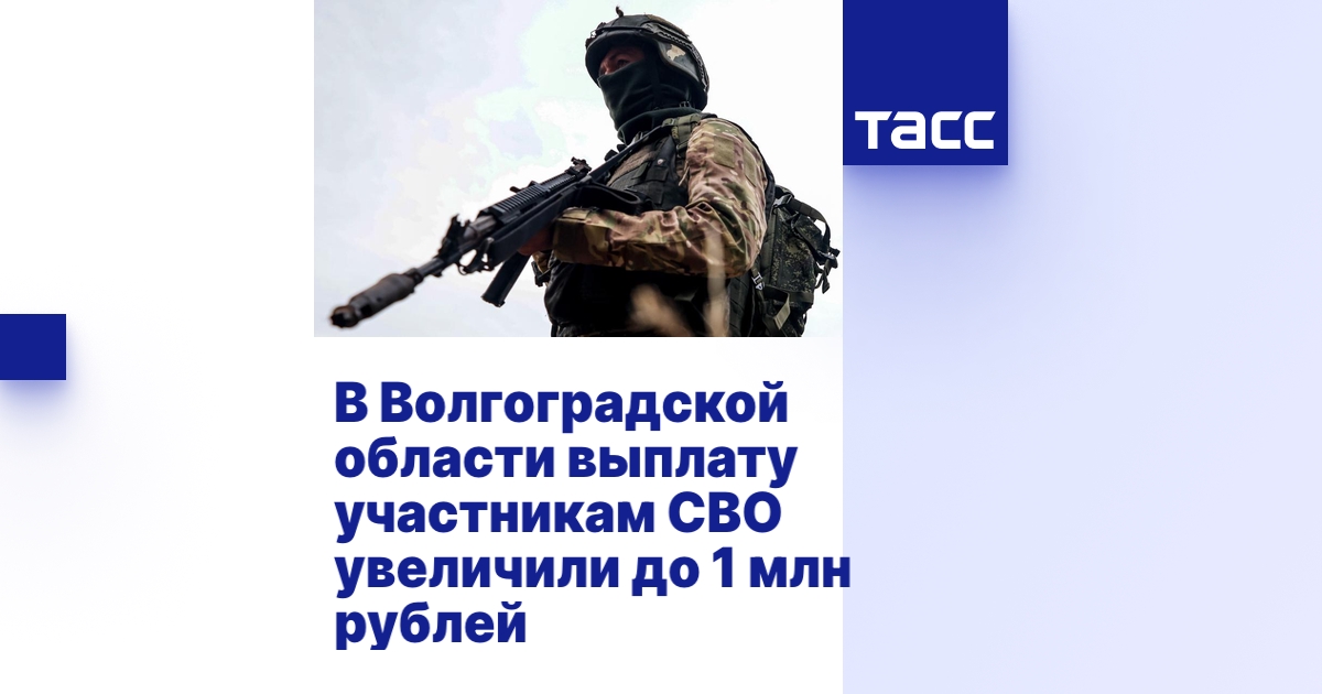 ВОЛГОГРАД, 15 сентября. /ТАСС/. Единовременную выплату жителям Волгоградской области, принимающим участие в специальной военной операции, увеличили с 400 тыс. до 1 млн рублей. Она коснется тех, кто подпишет контракт с 15 сентября, следует из официального постановления, опубликованного на администрации Волгоградской области.