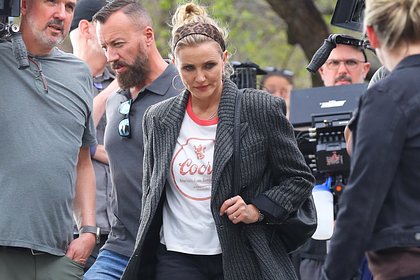 53-летняя знаменитость попала в объективы уличных фотографов во время съемок романтической комедии «Обман» в . На размещенных кадрах звезда предстала с собранными в небрежный пучок волосами и леопардовой повязкой на голове.