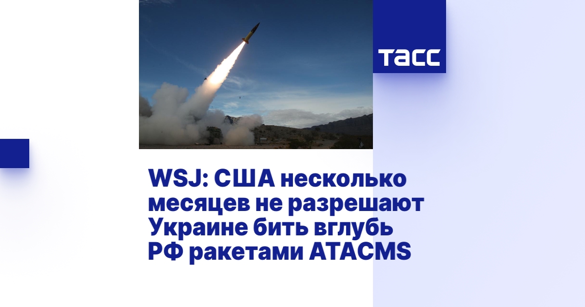 НЬЮ-ЙОРК, 24 августа. /ТАСС/. Пентагон на протяжении нескольких месяцев не позволяет Украине использовать американские тактические ракеты ATACMS для нанесения ударов вглубь российской территории. Об этом сообщила газета The Wall Street Journal (WSJ) со ссылкой на источники.