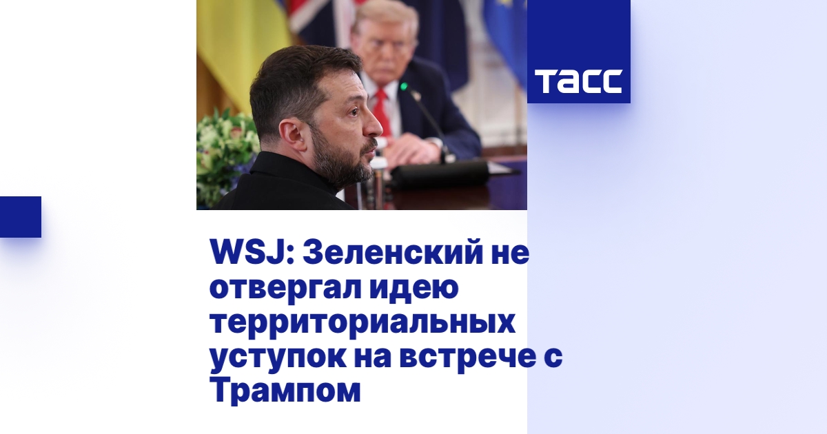 НЬЮ-ЙОРК, 19 августа. /ТАСС/. Владимир Зеленский в ходе закрытой встречи с президентом США Дональдом Трампом и европейскими лидерами не отверг сразу идею территориальных уступок. Об этом в понедельник сообщает газета со ссылкой на источники.