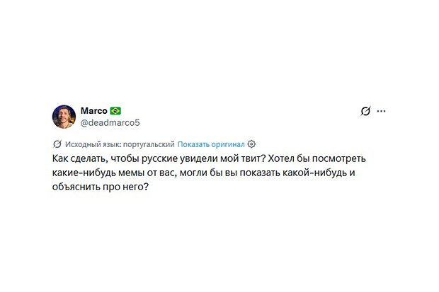 «Как сделать так, чтобы русские увидели мой твит? Хотел бы посмотреть какие-нибудь мемы от вас, могли бы вы показать какой-нибудь и объяснить его?» — он.