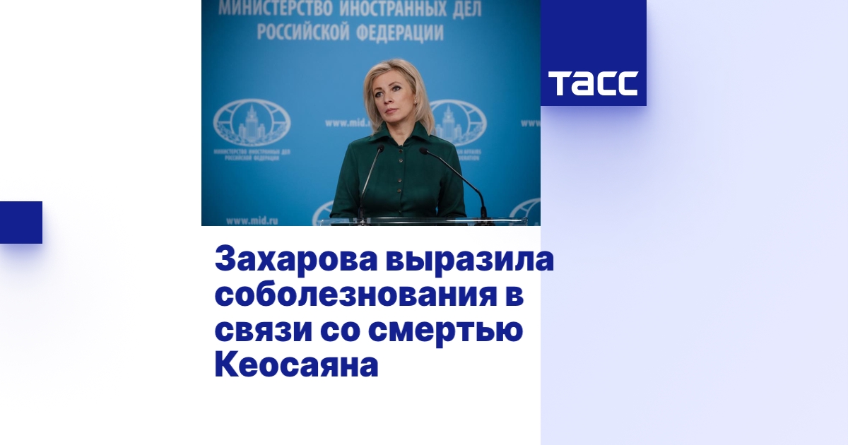 МОСКВА, 26 сентября. /ТАСС/. Официальный представитель МИД РФ Мария Захарова выразила соболезнования в связи со смертью режиссера Тиграна Кеосаяна отметив, что много лет знала его как человека слова. Дипломат назвала его добрейшим человеком и вспомнила, что первый выпуск программы Кеосаяна "Международная пилорама" проходил с ее участием.