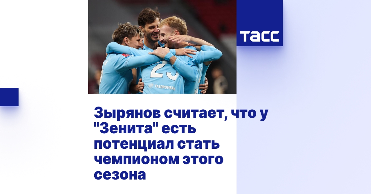 САНКТ-ПЕТЕРБУРГ, 19 декабря. /ТАСС/. У футбольного клуба "Зенит" есть потенциал стать чемпионом Мир - Российской премьер-лиги (РПЛ) в сезоне-2025/2026. Такое мнение высказал журналистам председатель правления "Зенита" Константин Зырянов.